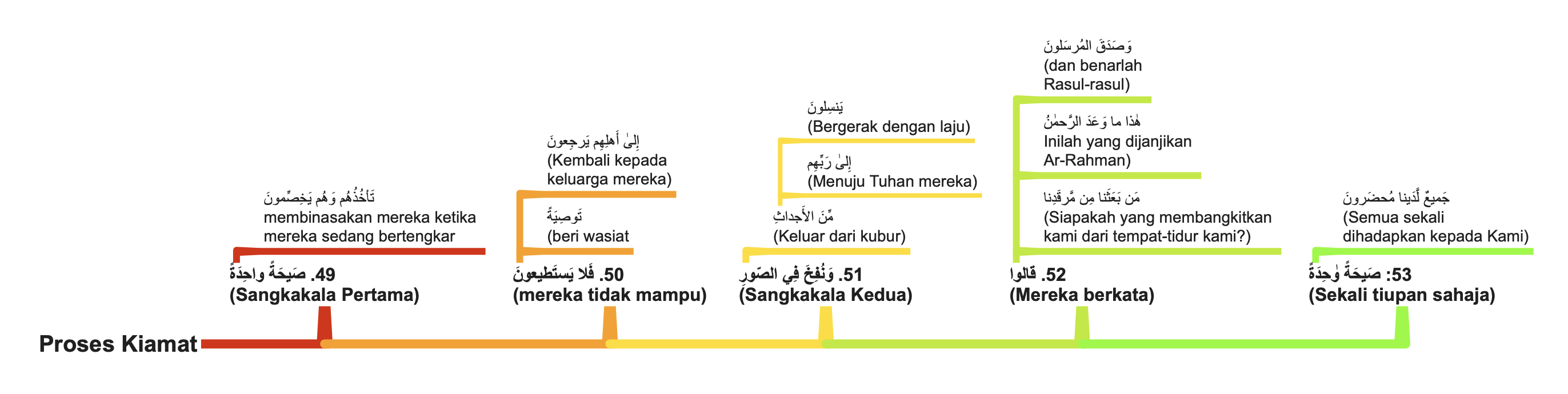 Yaasin Ayat 51: Ayat 51 – 68 adalah Perenggan Makro Keempat. Ia tentang Kiamat, Syurga dan Neraka. Ini adalah bahagian ketiga dalam Surah Yaasin ini. Bahagian pertama membincangkan tentang Risalah. Bahagian kedua membincangkan tentang Tauhid. Sekarang bahagian ketiga membincangkan tentang Hari Akhirat.
