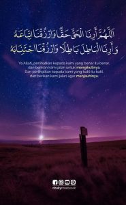 Ya Allah, tunjukkanlah kepada kami kebenaran itu sebagai suatu perkara yang benar, dan anugerahilah kami kekuatan mengikuti kebenaran itu. Dan tunjukkanlah kepada kami kesalahan itu sebagai suatu perkara yang salah, dan anugerahilah kami kekuatan untuk menjauhi kesalahan itu.