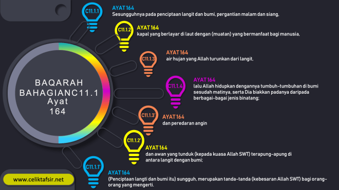 [C11.1.1]/[C11.1.1′] – Di dalam kedua-dua Bahagian ini Allah ﷻ menyuruh manusia melihat kepada alam ini untuk menaikkan iman kita. Ini adalah jenis ayat yang boleh dilihat pada alam. Ini dipanggil “Ayat-ayat Kauniyyah”.