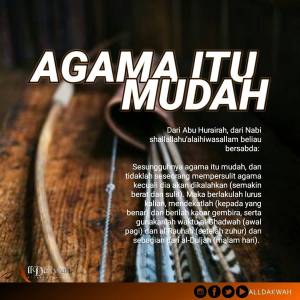 Daripada Abu Hurairah رَضِيَ اللّٰهُ عَنْهُ bahawa Nabi ﷺ bersabda: “Sesungguhnya agama itu mudah, dan tidaklah seseorang mempersulitkan urusan agama kecuali dia akan dikalahkan (semakin berat dan sulit). Maka hendaklah kamu betul dan bersederhana serta hendaklah kamu bergembira. Hendaklah kamu mendapatkan pertolongan di waktu pagi dan petang serta sebahagian daripada waktu malam yang berlalu.
