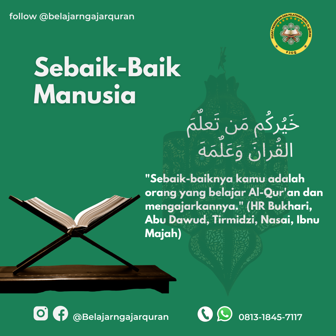 “Sebaik-baik kamu adalah orang mempelajari Al-Qur’an dan mengajarkannya”. Riwayat al-Bukhari No. 5027)