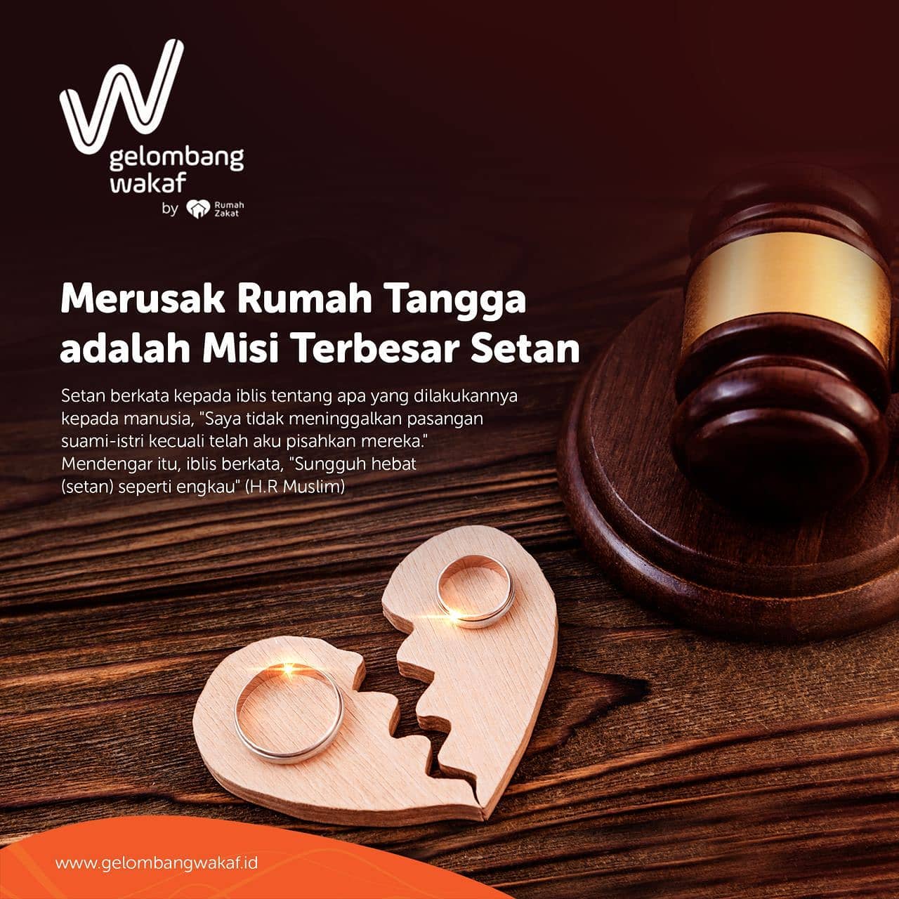 “Sesungguhnya iblis meletakkan singgahsananya di atas air kemudian ia mengutus pasukannya. Perajurit yang kedudukannya paling dekat dengannya ialah perajurit yang paling besar kejahatannya. Seorang perajuritnya datang dan berkata “Aku telah melakukan ini dan itu.” Iblis berkata “Engkau tidak melakukan apa-apa.” Datang perajurit yang lain lalu berkata “Aku tidak meninggalkan (manusia) melainkan sesudah aku pisahkan antara dia dengan isterinya.” Iblis mendekatkan perajuritnya itu dan berkata “Ya, engkau telah melakukannya.” al-A’masy (perawi) berkata “Aku mengira baginda ﷺ bersabda “Iblis lantas memeluknya.”