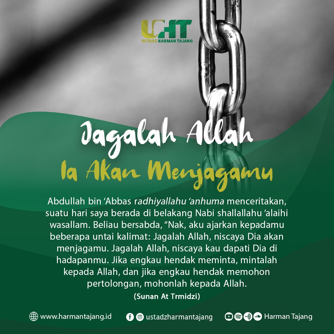 Daripada Abul ‘Abbas ‘Abdullah bin ‘Abbas رَضِيَ اللَّهُ عَنْهُمَا, ia berkata, “Pada suatu hari aku pernah berada di belakang Nabi ﷻ, lalu baginda bersabda, ‘Wahai anak muda! Sesungguhnya aku akan mengajarkan beberapa kalimat kepadamu. Jagalah Allah, nescaya Allah akan menjagamu. Jagalah Allah, nescaya engkau akan mendapati-Nya di hadapanmu.