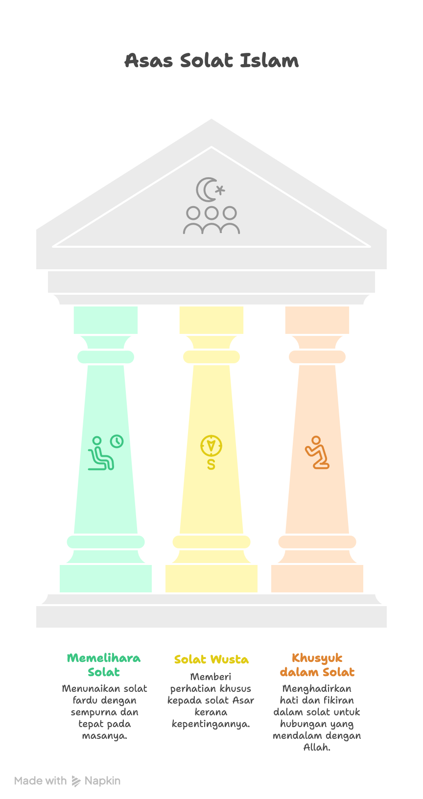 Akan tetapi apakah maksud menjaga solat itu? Antaranya,