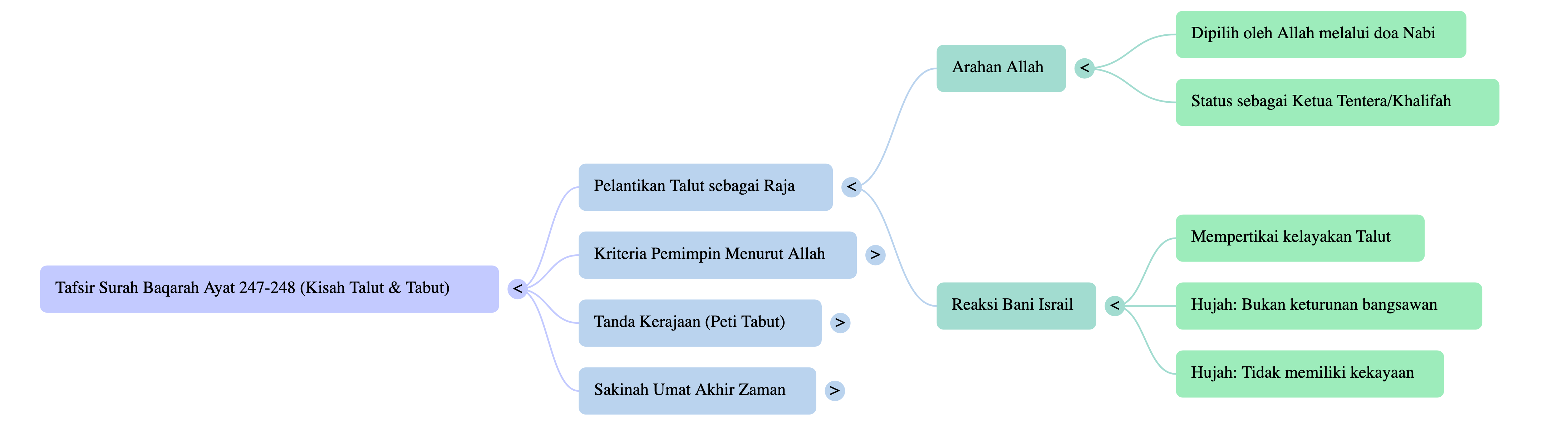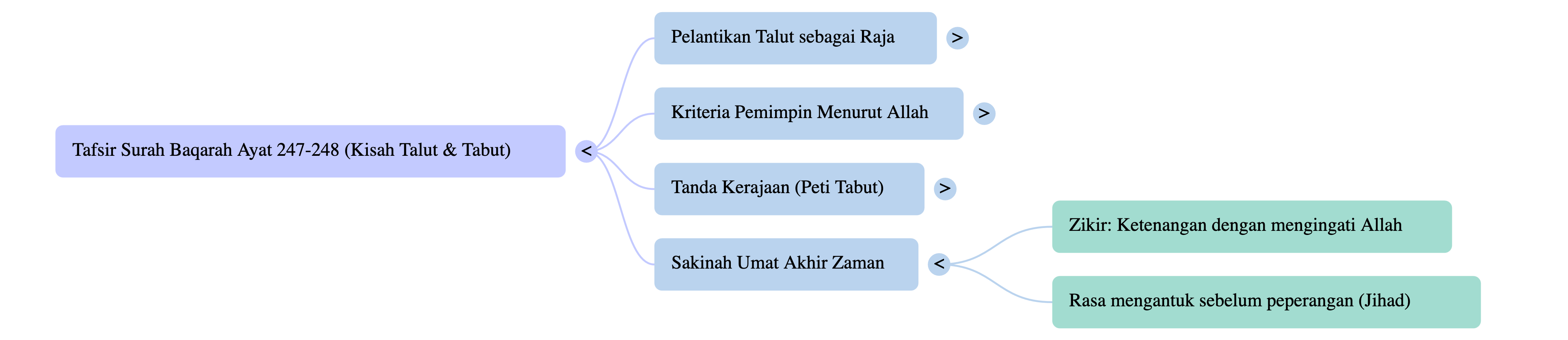 Baqarah Ayat 247: Kisah sekarang berpatah balik kepada situasi selepas mereka minta dilantikkan raja untuk menjadi jeneral perang untuk mereka. Allah ﷻ memberikan penjelasan lebih lagi tentang kisah itu. Sekarang Allah ﷻ telah melantik Talut sebagai ketua perang itu.