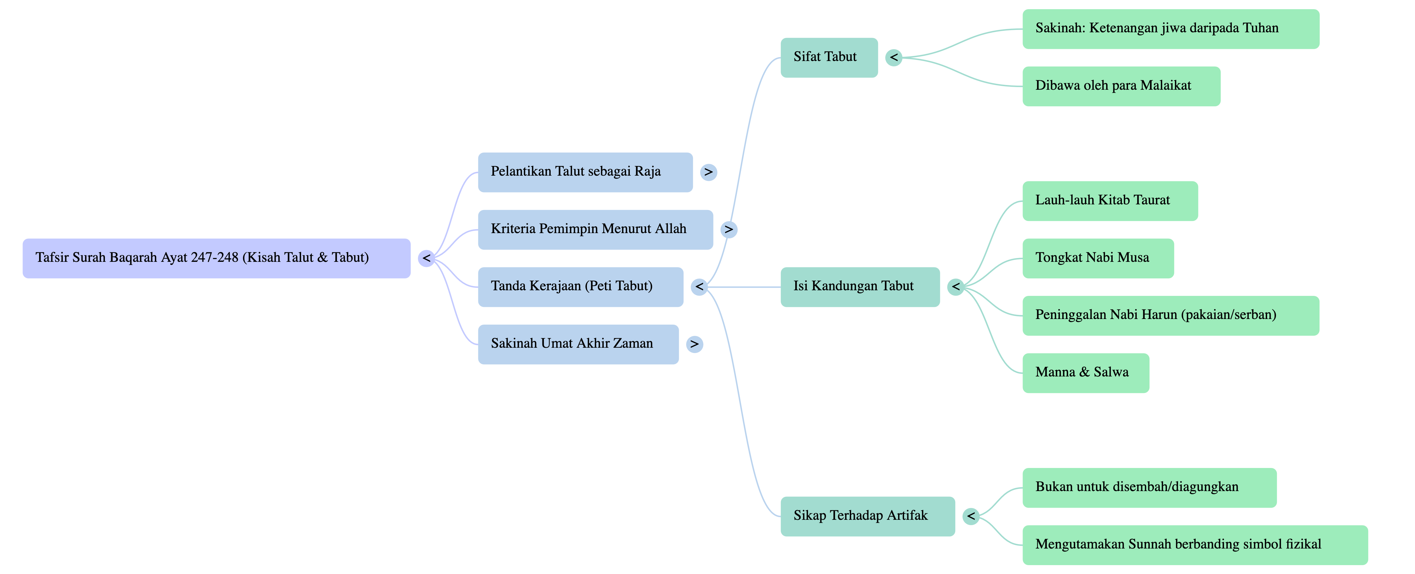 - Ayat 248: Nabi mereka memberikan bukti (ayat) kepada kaumnya, iaitu Tabut yang dibawa oleh malaikat sebagai tanda kekuasaan Talut.