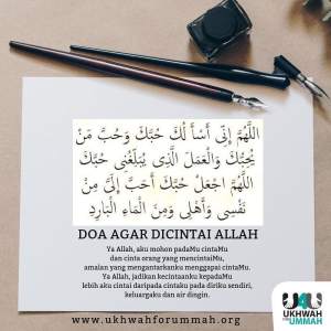 “Ya Allah, aku mohon pada-Mu cinta-Mu dan cinta orang yang mencintai-Mu, amalan yang mengantarkanku menggapai cinta-Mu.Ya Allah, jadikan kecintaanku kepada-Mu lebih aku cintai daripada cintaku pada diriku sendiri, keluargaku, dan air dingin.”