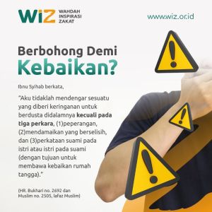 Daripada ‘Asma bt Yazid رضي الله عنها, beliau berkata: Rasulullah ﷺ bersabda: Tidak halal berbohong kecuali dalam tiga keadaan: Perkataan seorang suami kepada isterinya agar isterinya gembira, berbohong ketika perang, dan berbohong untuk mendamaikan manusia.