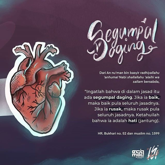 “Ingatlah bahawa di dalam jasad itu ada segumpal daging. Jika ia baik, maka baik pula seluruh jasad. Jika ia rosak, maka rosak pula seluruh jasad. Ketahuilah bahawa ia adalah hati (jantung)”