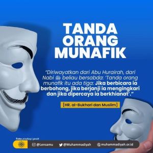“Di antara tanda munafik ada tiga: jika berbicara, dusta; jika berjanji, tidak menepati; jika diberi amanat, ia khianat.”