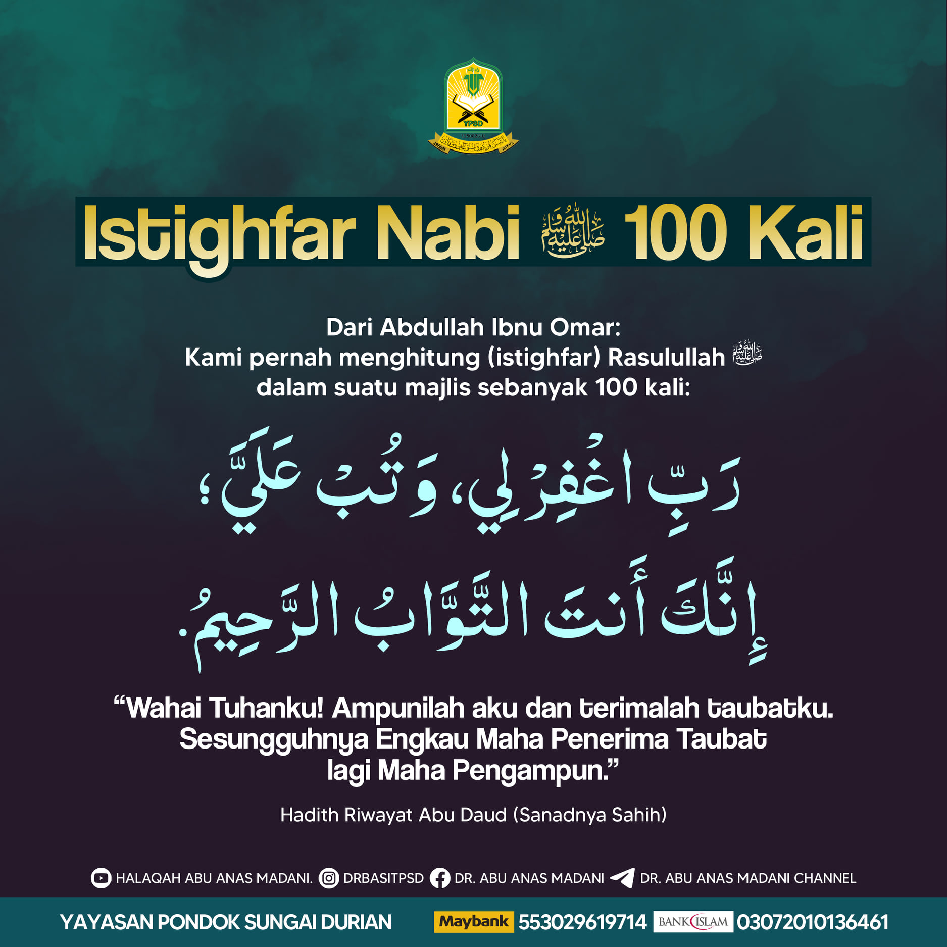 يَا أَيُّهَا النَّاسُ تُوبُوا إِلَى اللهِ فَإِنِّي أَتُوبُ فِي الْيَوْمِ إِلَيْهِ مِائَةَ مَرَّةٍ