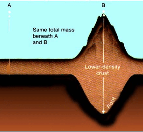 Maka kerak bumi yang bertembung antara satu sama lain akan bertindak – yang bahagian keras akan menusuk ke dalam bumi dan yang lembut akan naik menjadi gunung. Ini dipanggil proses isostasi.