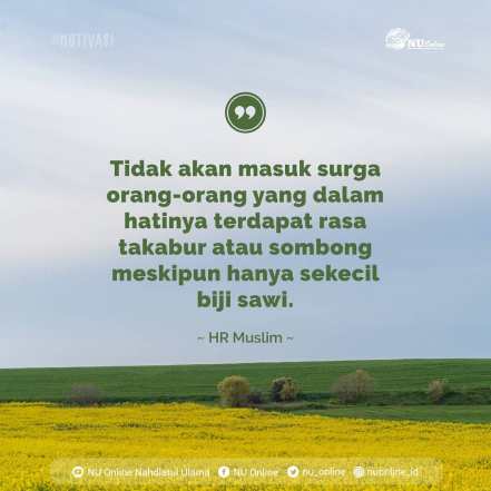 “Tidak akan masuk syurga seseorang yang di dalam hatinya terdapat kesombongan sebesar biji sawi.” Ada seseorang yang bertanya, “Bagaimana dengan seorang yang suka memakai baju dan sandal yang bagus?” Beliau menjawab, “Sesungguhnya Allah itu indah dan menyukai keindahan. Sombong adalah menolak kebenaran dan meremehkan orang lain.“