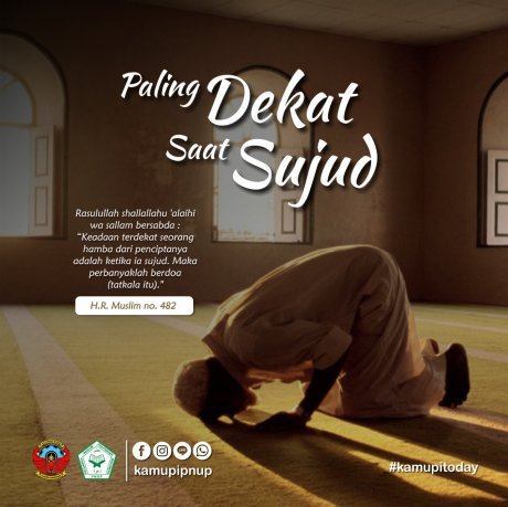 Keadaan yang paling hampir seseorang itu kepada Tuhan-nya adalah ketika dia sedang sujud. Oleh itu, perbanyakkanlah doa ketika sujud.