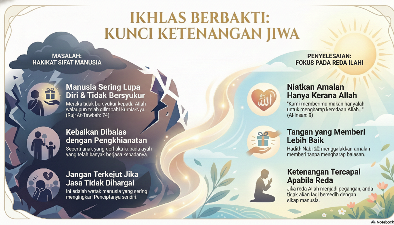 Kalau dengan Allah ﷻ pun manusia tidak bersyukur, maka tenanglah anda. Allah ﷻ menceritakan sifat manusia yang tidak mengenang budi di dalam Yunus:12
