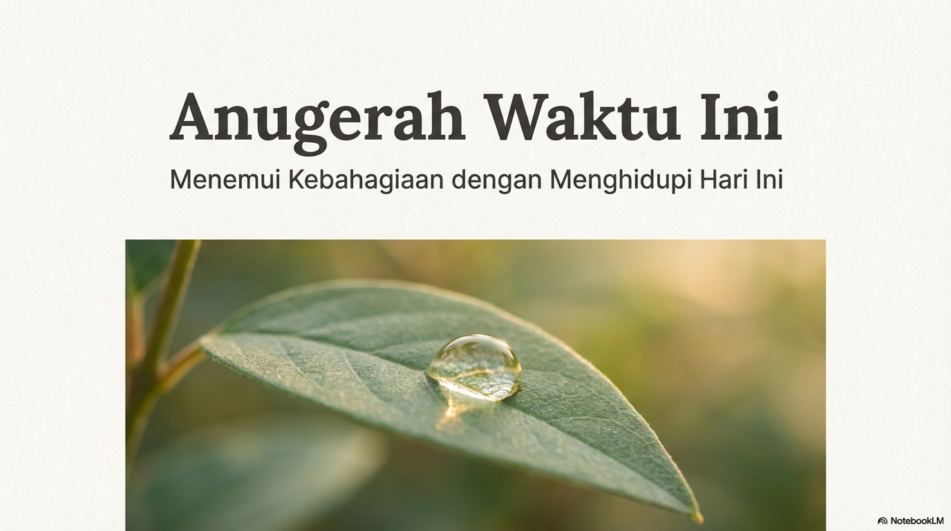 Hari ini adalah hari yang telah di’hadiah’kan kepada anda dan kerana itulah namanya pun ‘present’. Salah satu kebahagiaan akan didapati oleh anda jikalau anda mengecapi kehidupan sekarang ini, waktu ini. Fikiran anda fokus kepada masa sekarang sahaja dan anda akan menghargai masa sekarang.