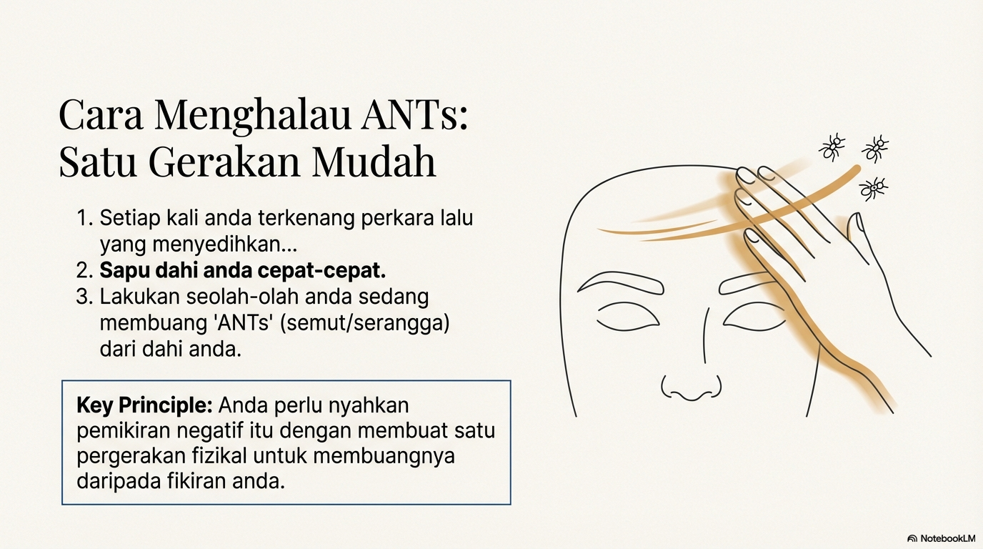 Benar sekali kata-kata ini. Kita menghilangkan rasa kebahagiaan waktu sekarang kerana asyik memikirkan masa lampau dan takut menghadapi masa hadapan. Apabila hati menjadi gundah gulana, bagaimana hendak menikmati waktu sekarang? Maka kita harus belajar mencontohi sikap kanak-kanak. Lihatlah mereka bergembira sahaja kerana mereka belum pandai untuk risau hal semalam dan merancang hari esok. Contohnya begini, anda sedang makan akan tetapi sedang sibuk memikirkan kerja kerana mungkin ada masalah besar yang sedang dihadapi. Tentulah kesedapan makanan itu tidak terasa. Hilang sudah satu nikmat yang Allah berikan, bukan? Malah pencernaan makanan pun menjadi tidak bagus.